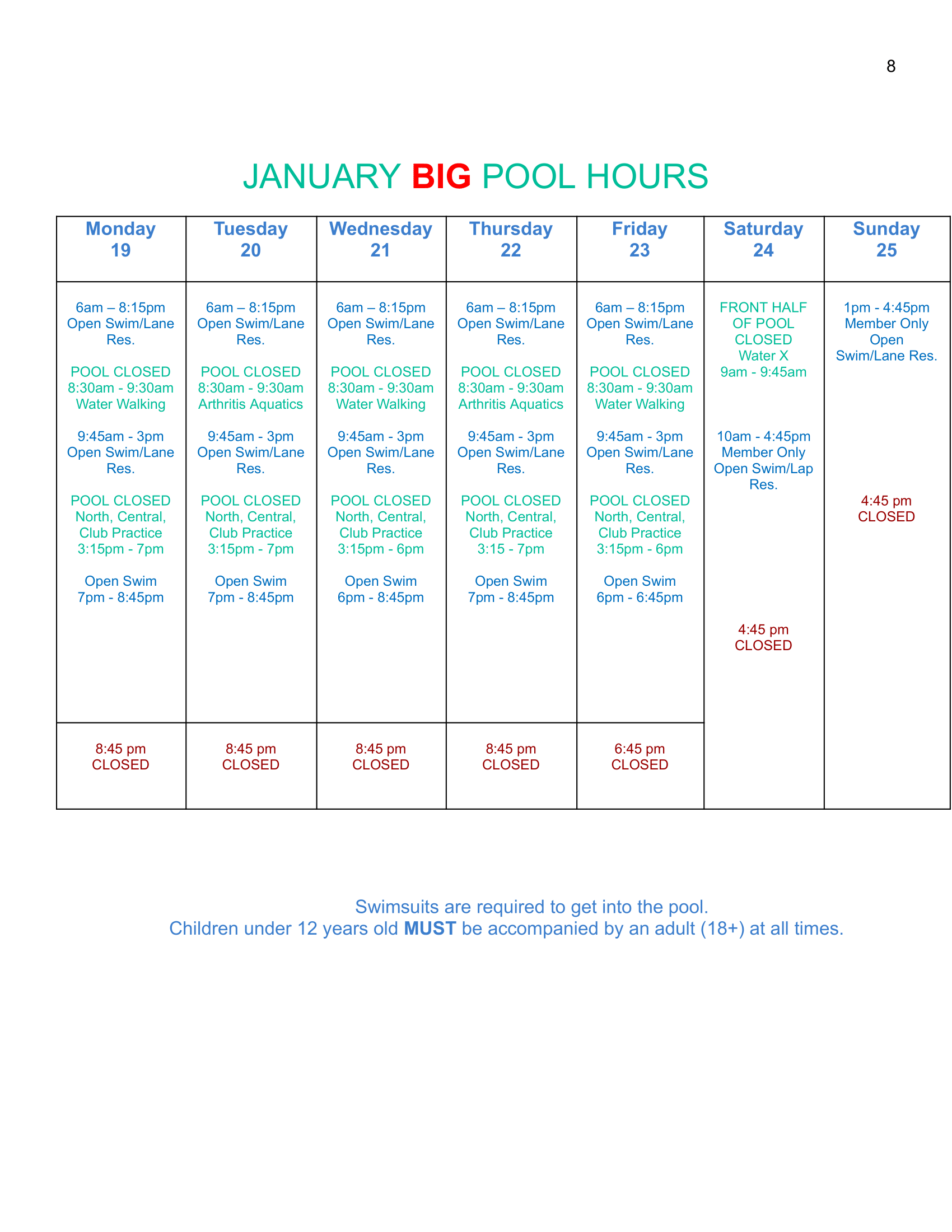In an effort to keep all swimmers safe, our policy requires all swimmers (of all ages) wishing to enjoy the deep end of the large pool to take a swim test. Strong, confident swimmers who pass the swim test will receive a red swimmers wristband that must be worn in the pool. Swimmers without the wristband will be asked to stay in the shallow end of the large pool or enjoy our small pool.