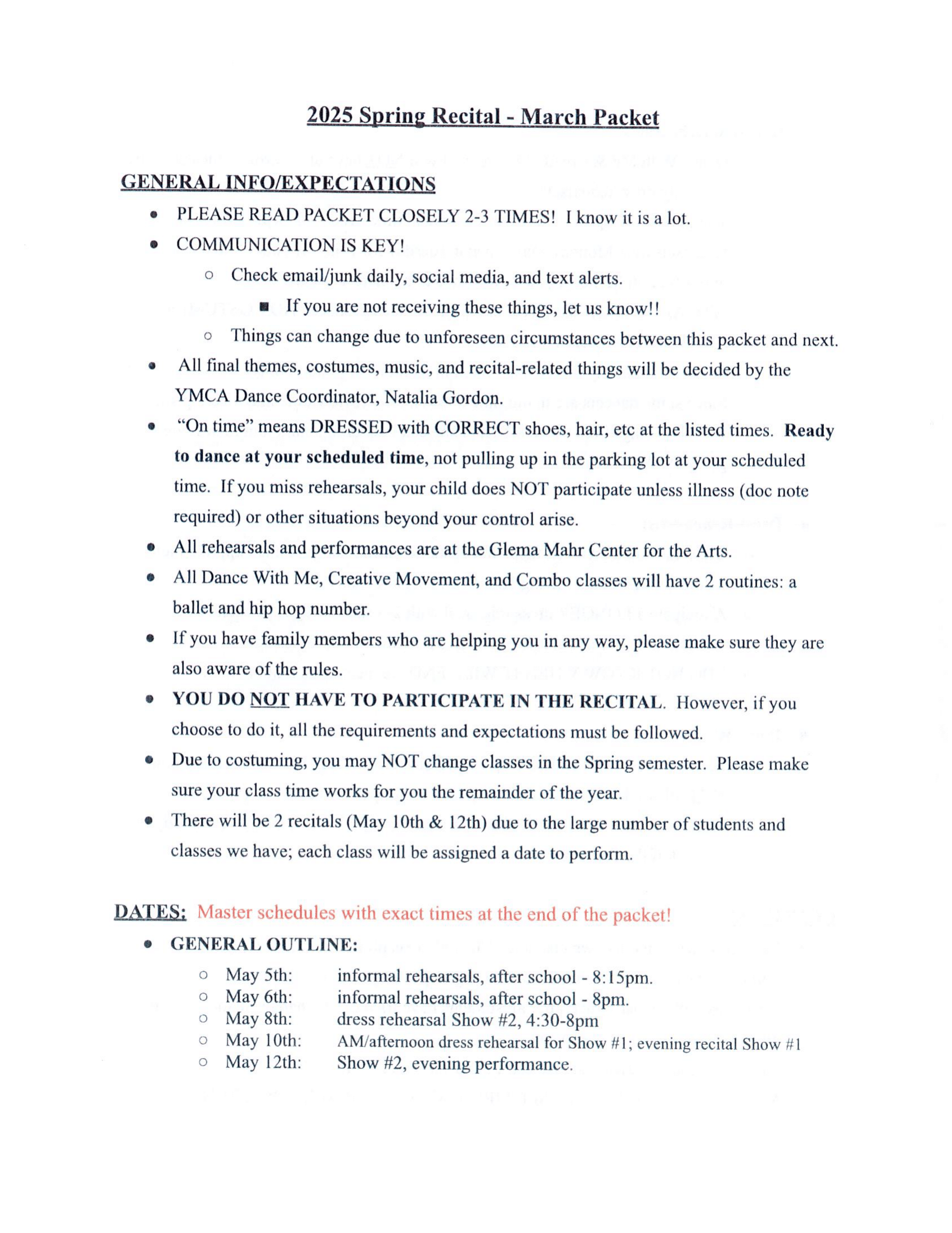 RECITAL INFORMATION